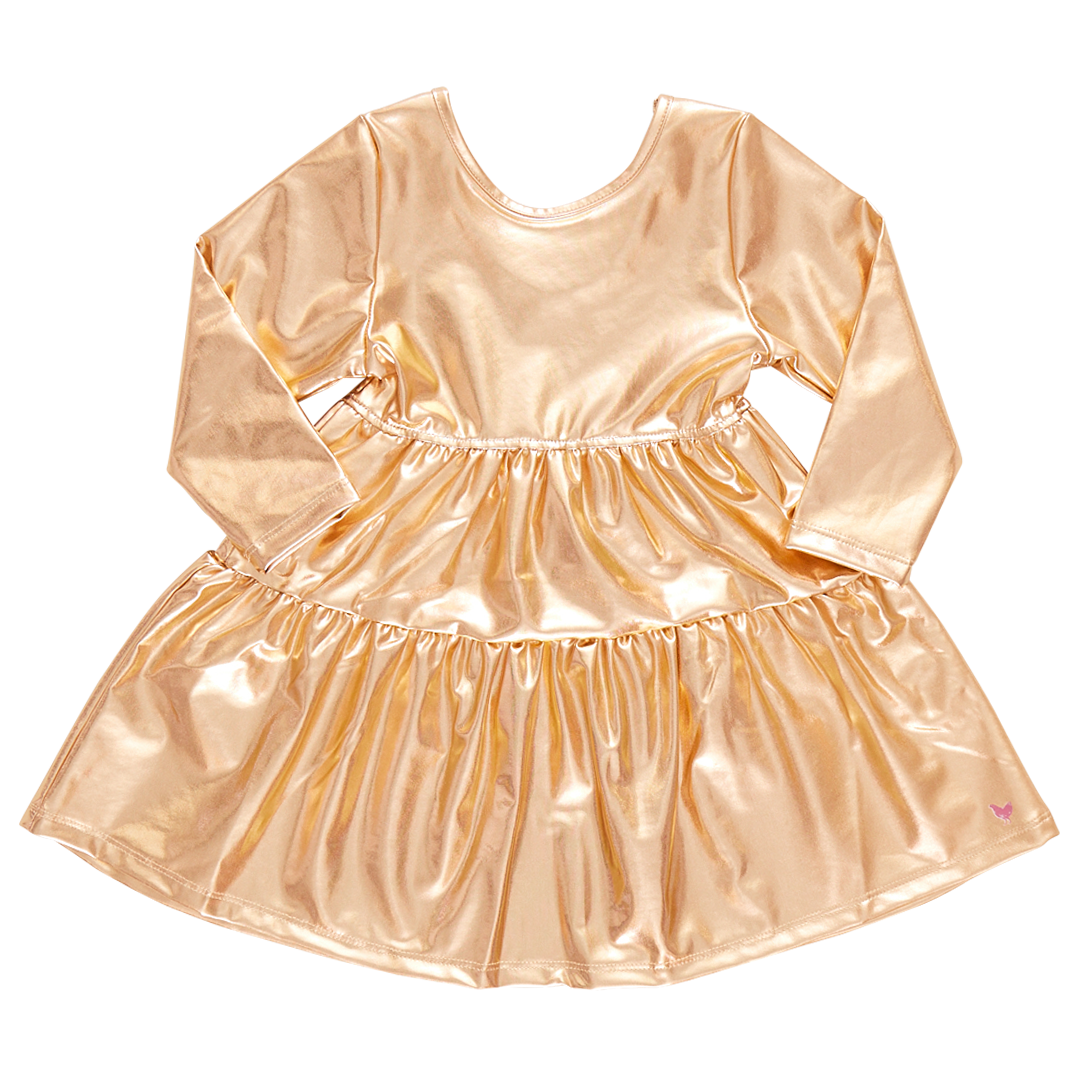 Girls Lame Polly Dress - Gold