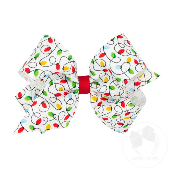 Medium Holiday-themed Christmas Lights Grosgrain Hair Bow