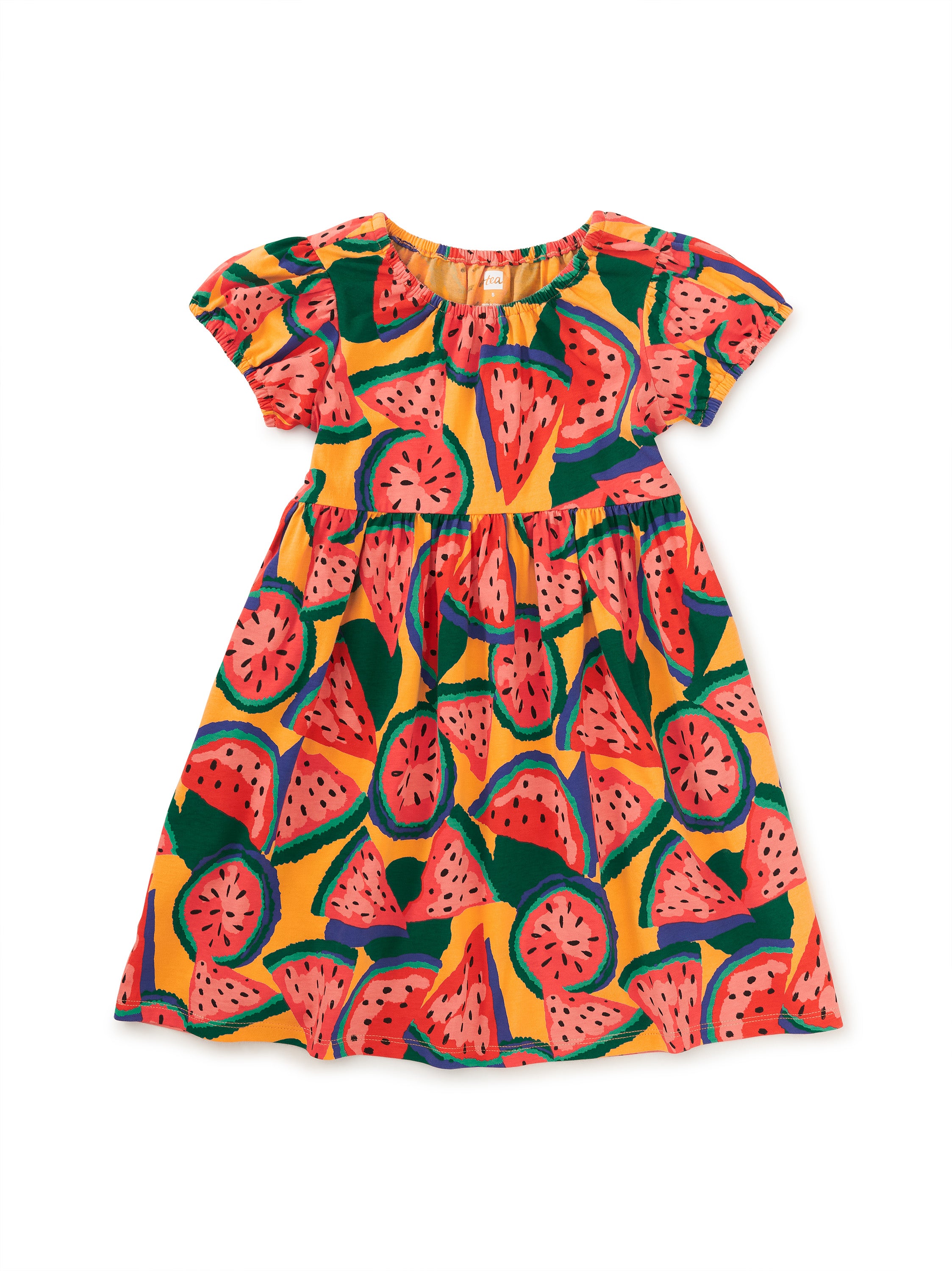 Puff Sleeve Empire Dress - Wiggly Watermelon