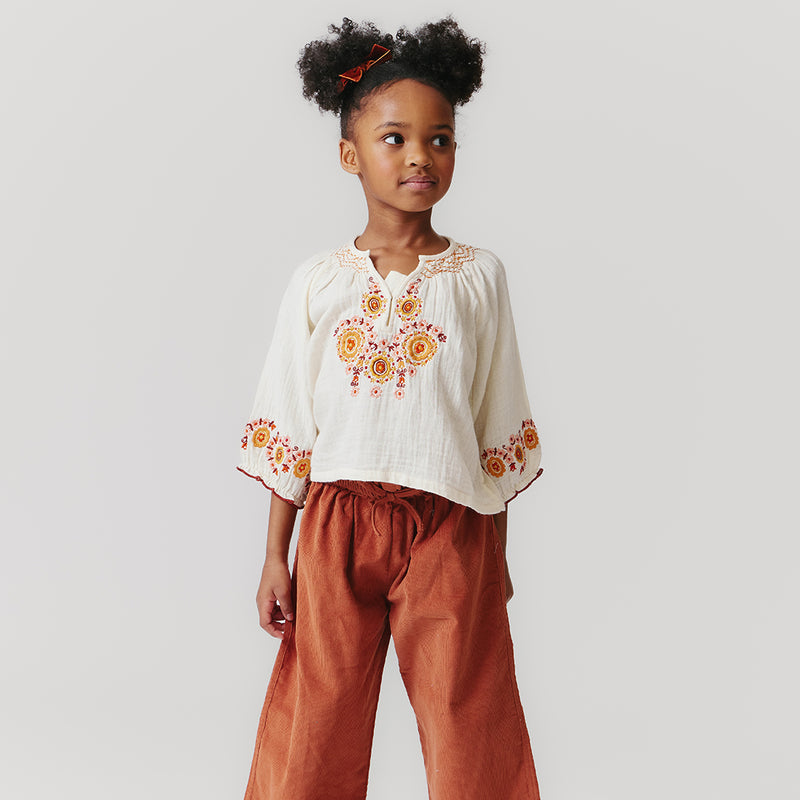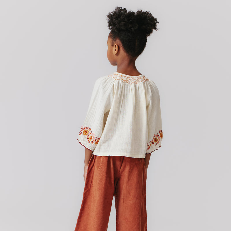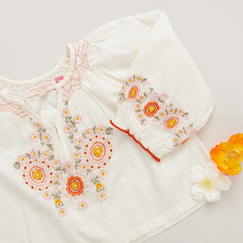 Girls Sutton Suit - Pink faux Embroidery Stripe