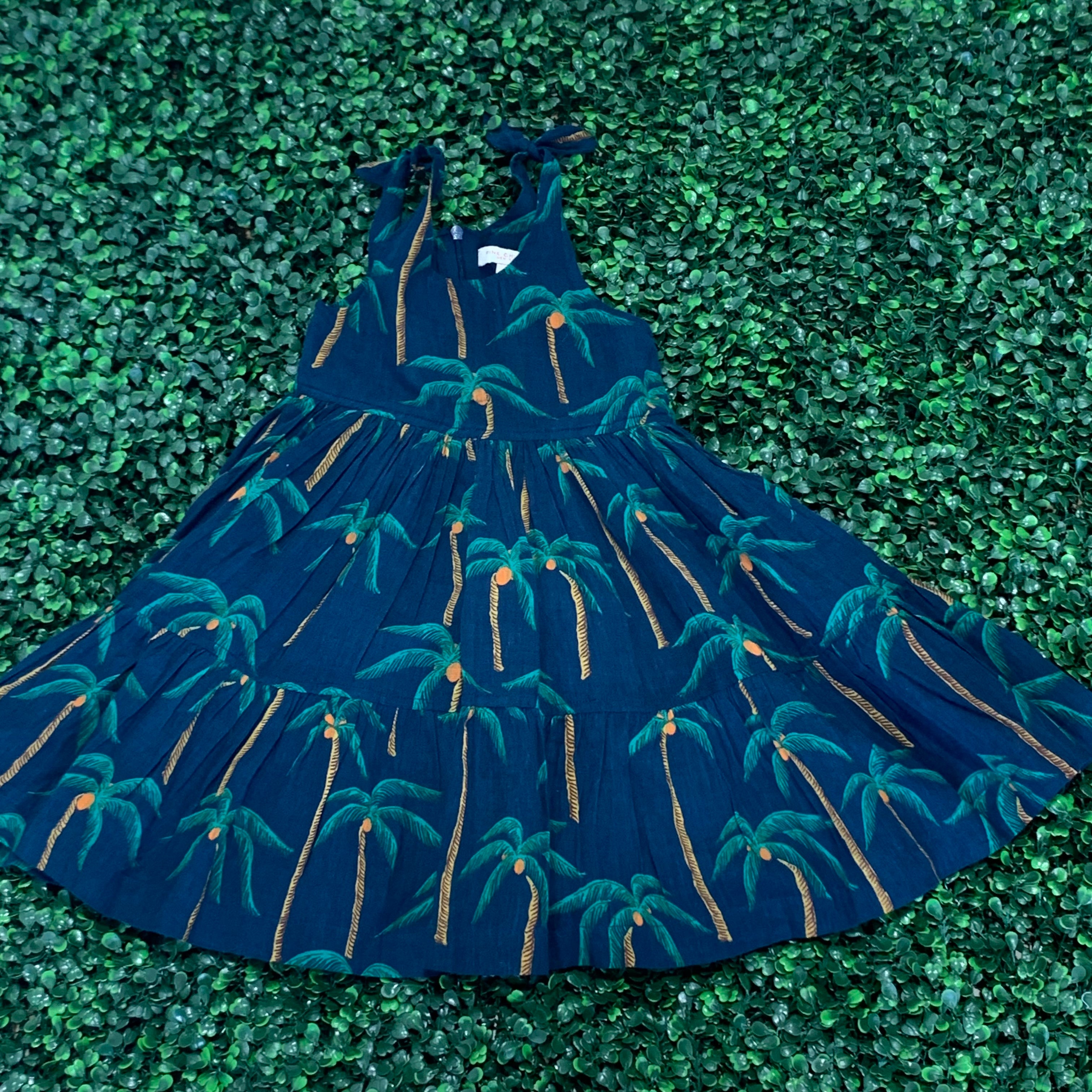 Taylor Dress - Navy Palm Tree