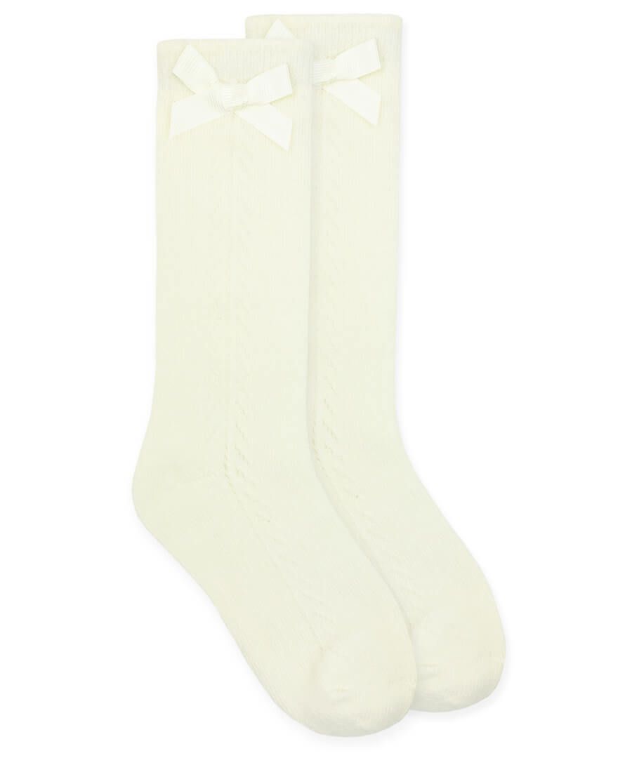 Pointelle Bow Knee High Socks 1 Pair - Ivory