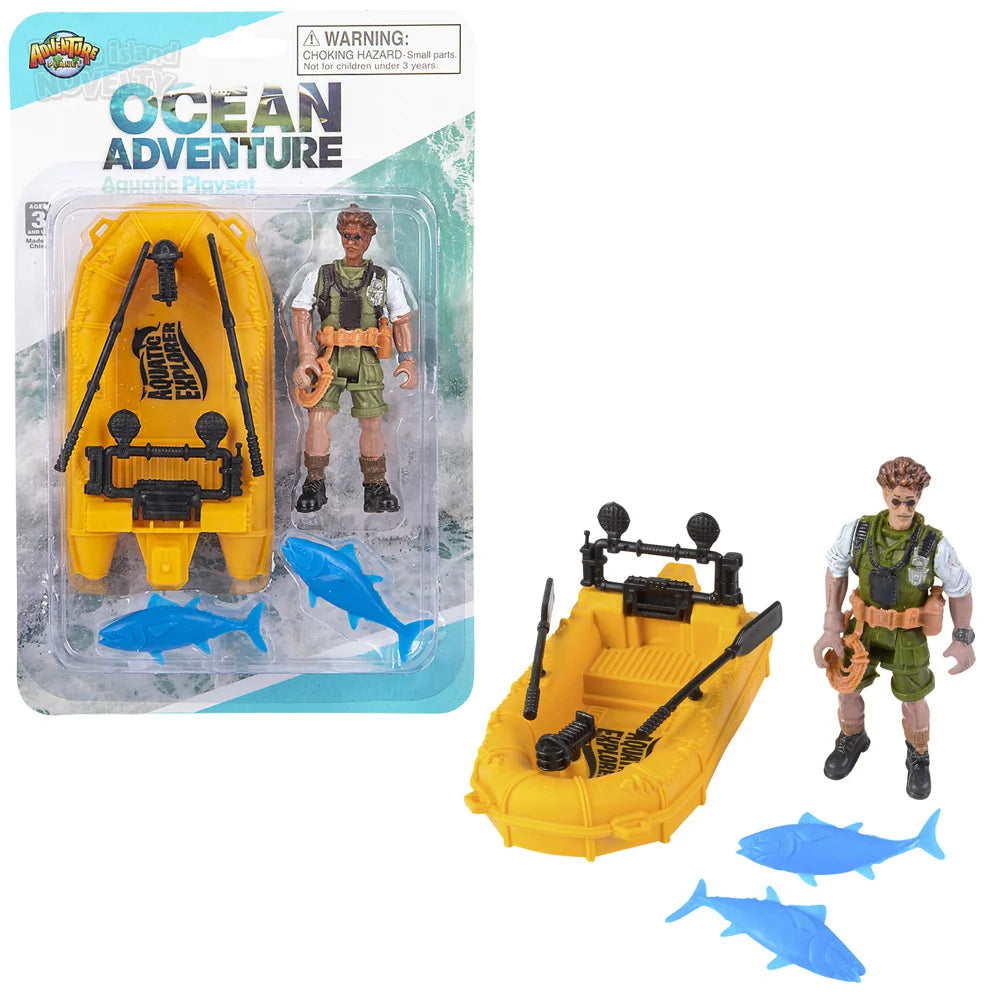 - Features an action figure with a boat and fish figures